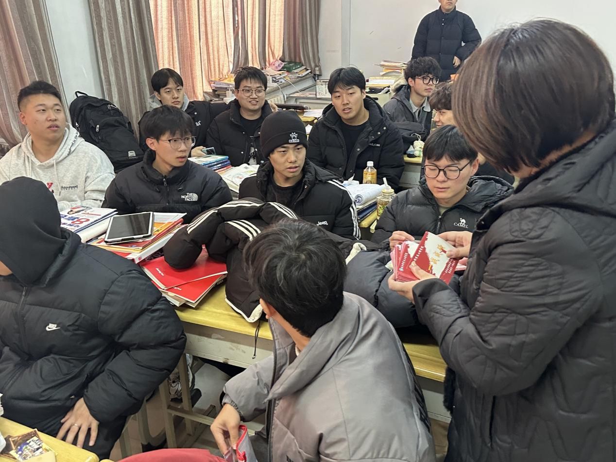 交流结束后,老师们向在场学子逐一发放了“考研助力包”。礼包内装有学院领导对安全学子的寄语卡片以及考试专用文具、营养食品等实用物资,每一份都承载着学院对学子们的细致关怀与美好祝愿,旨在从细微处为同学们提供便利,缓解备考压力。