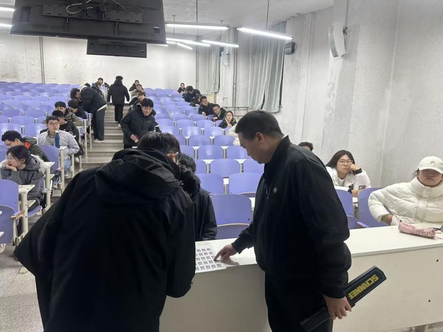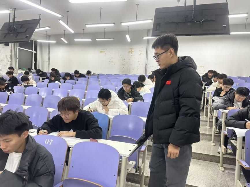 为保障新生入学后首场重要考试顺利进行,营造公平诚信的考试环境,2025年11月21日,安全学院2025级新生思想道德与法治课程考试期间,学院党委书记张勇志、党委副书记伊宏艳带领全体新生班导师开展全方位巡考工作。