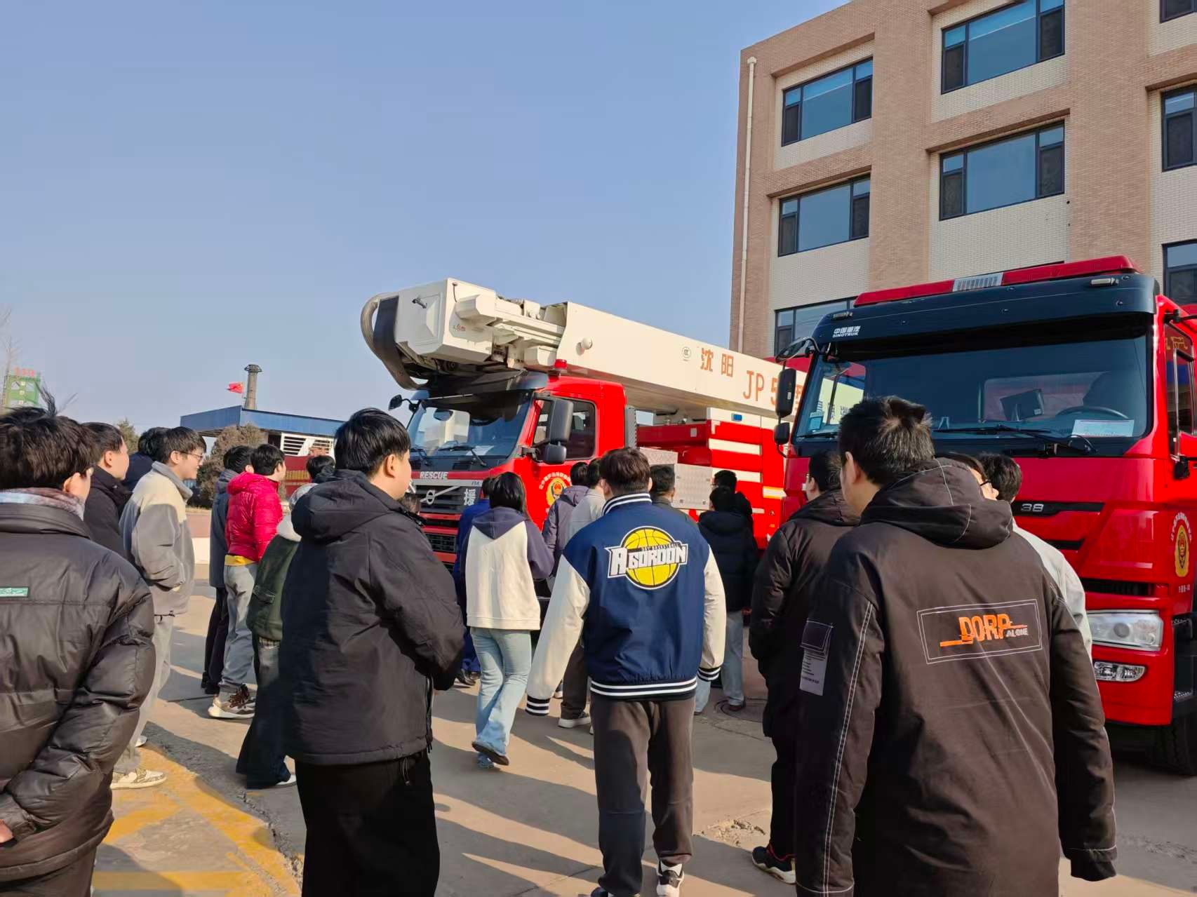 随后,在指战员的专业讲解下,师生们依次参观并体验了多种消防救援车辆,包括泡沫消防车、高射消防车以及排烟消防车等特种装备。讲解员详细介绍了不同类型消防车在各类灾害处置中的功能特点与应用场景。