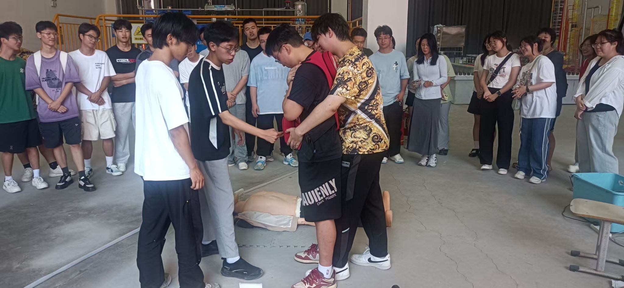实习第二天,师生前往实训大楼西101教室,开启化工安全与应急救援专题学习。现场围绕化工生产过程中的潜在危险展开讲解,明确化工场所需配备的消防设施类型。安全学院应急协会的同学还现场演示心肺复苏与海姆立克急救法,并邀请实习学生参与实操,让大家在亲身体验中掌握关键应急救援技能。